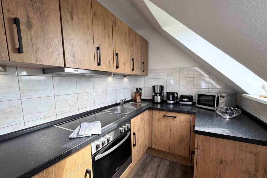 Ein großes Schlafzimmer mit gemütlicher Kuschel,- oder Lese-Ecke und zwei kleinere Schlafzimmer sind ideal für den großen Familienurlaub. Ein gemütlicher Wohn-Essbereich und eine komfortable Küche runden das schöne Ambiente dieses Apartments ab.